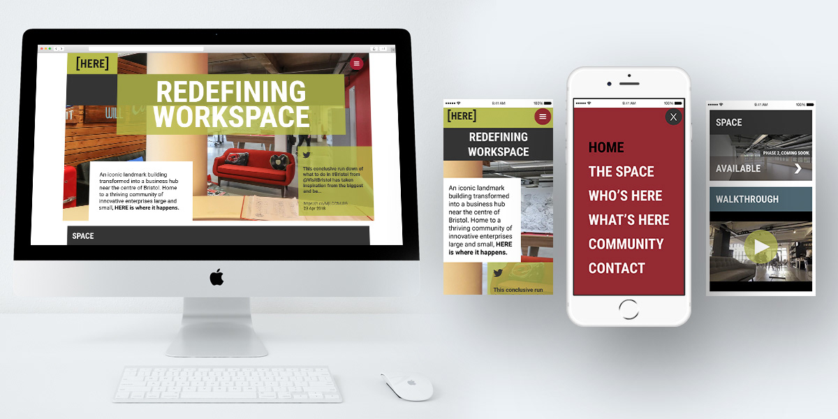 We created a brand which celebrated the building as a living space, somewhere for businesses to thrive. What’s important about office buildings is what happens inside. Every business under this roof enjoys an inspiring blank canvas they can make their own. It’s not about a space people fit into. It’s about a space fit for people. That’s what HERE, as a non-brand, celebrates. //with Colour&Thing - Bristol