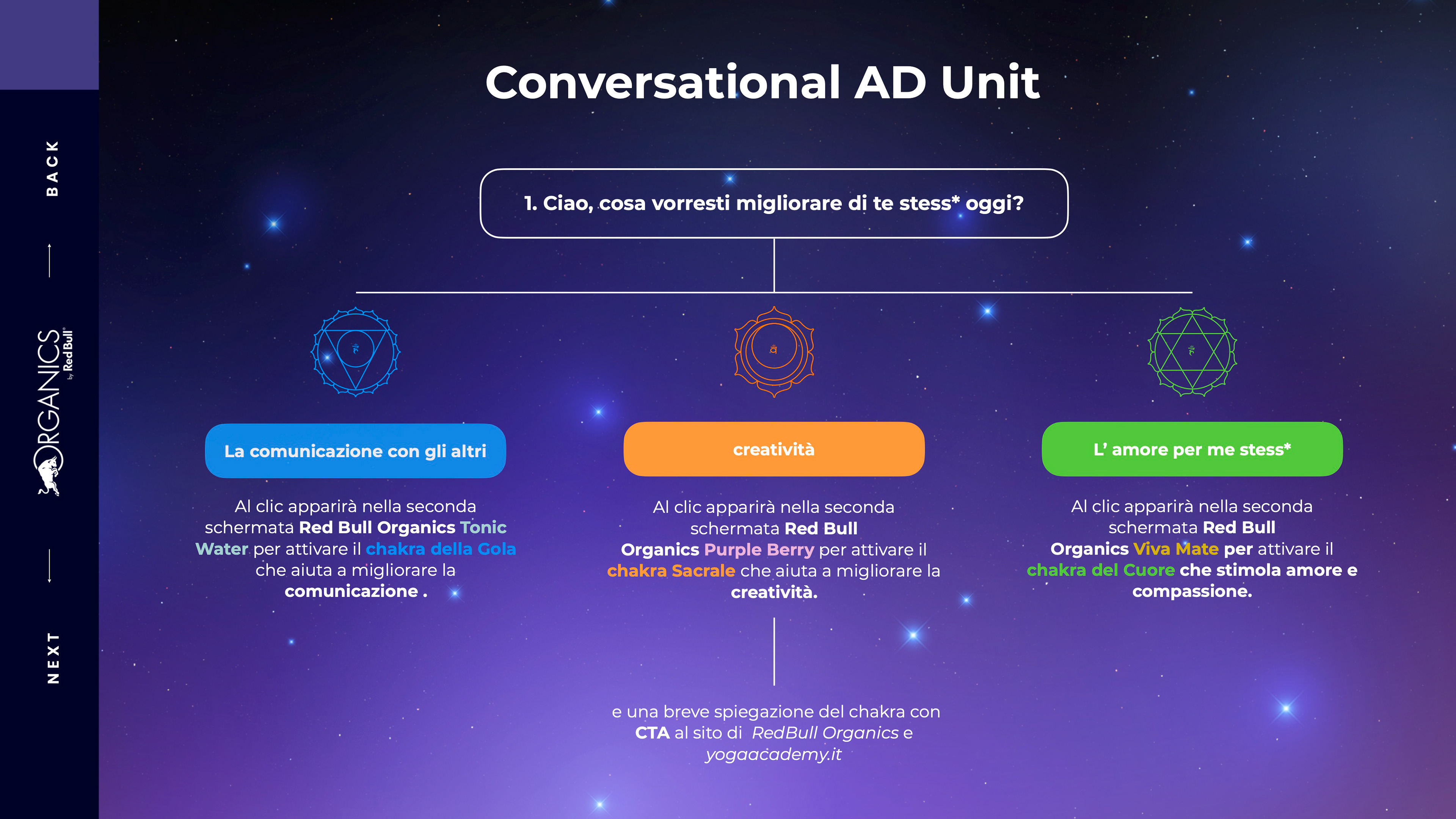 To relaunch #OrganicsbyRedBull on the Italian market we thought about connecting these drinks to the chakra world, stressing the importance of wellness (both mental and physical) in a period of time where people need to take care of themselves.